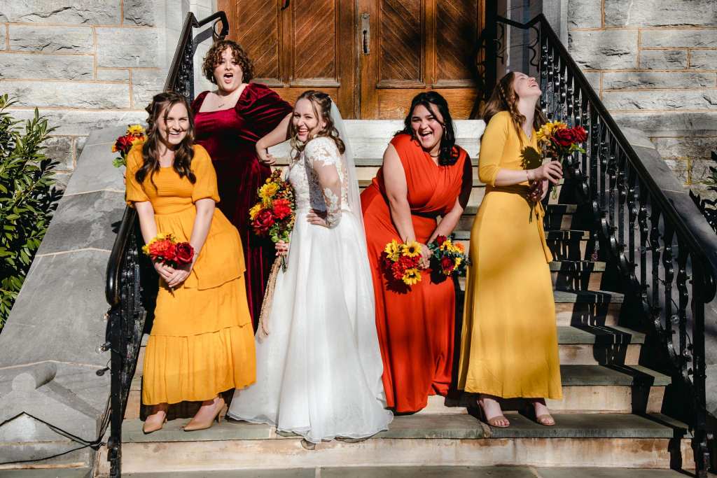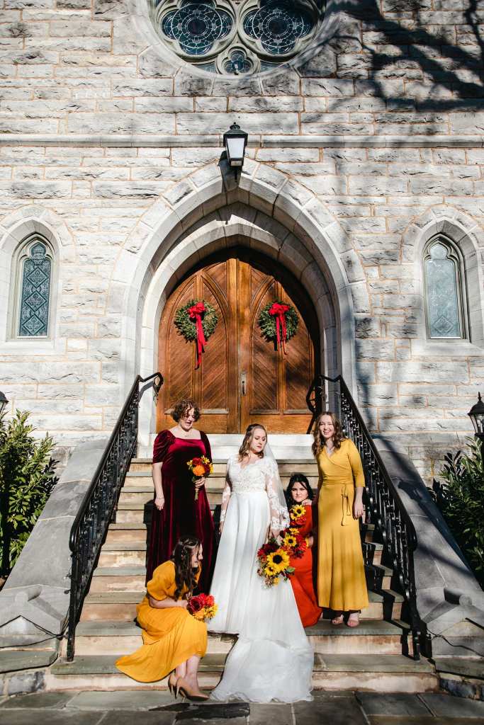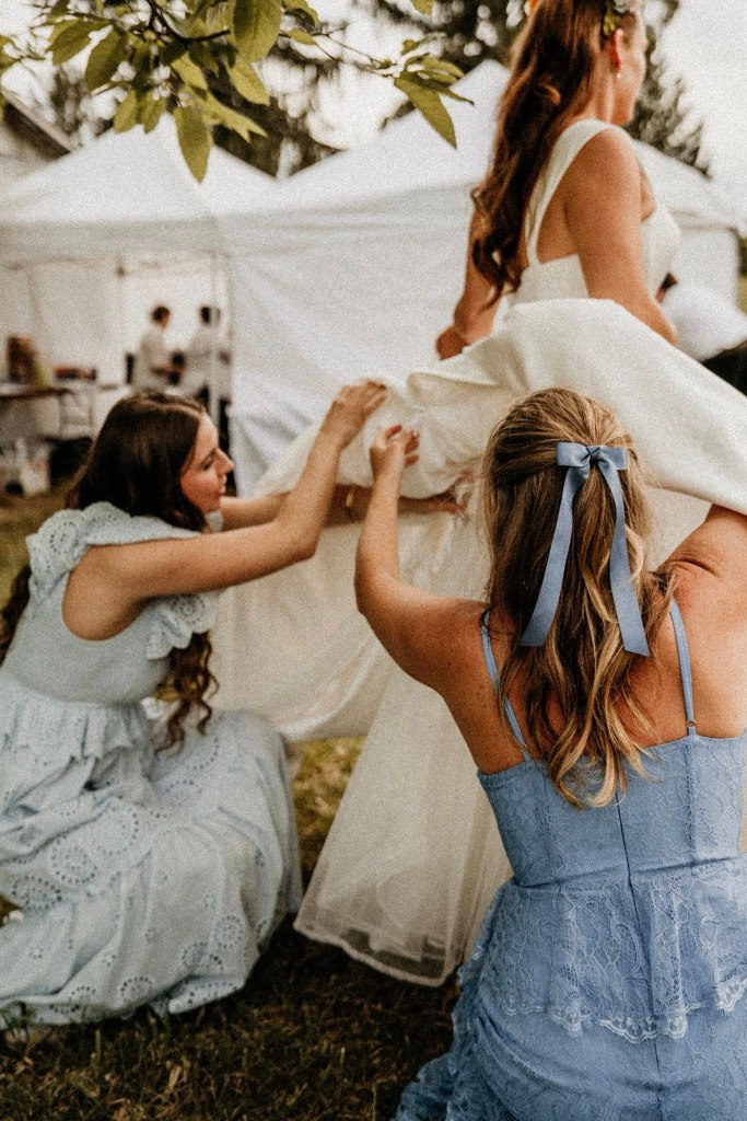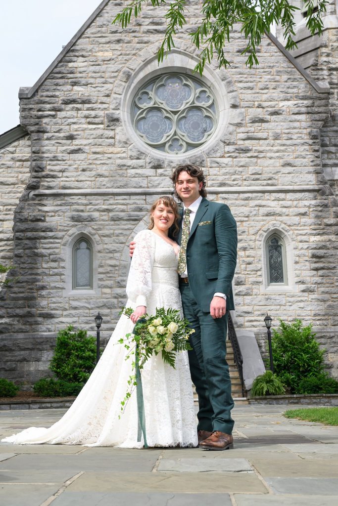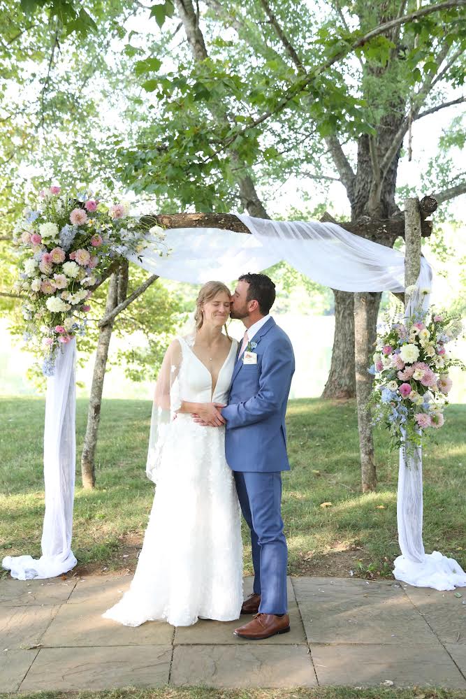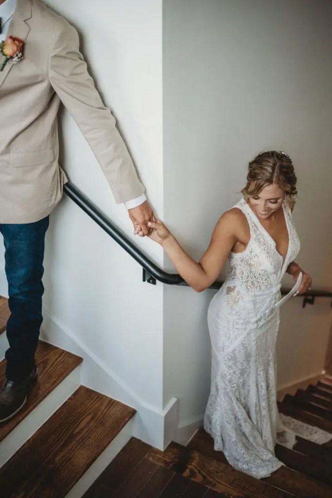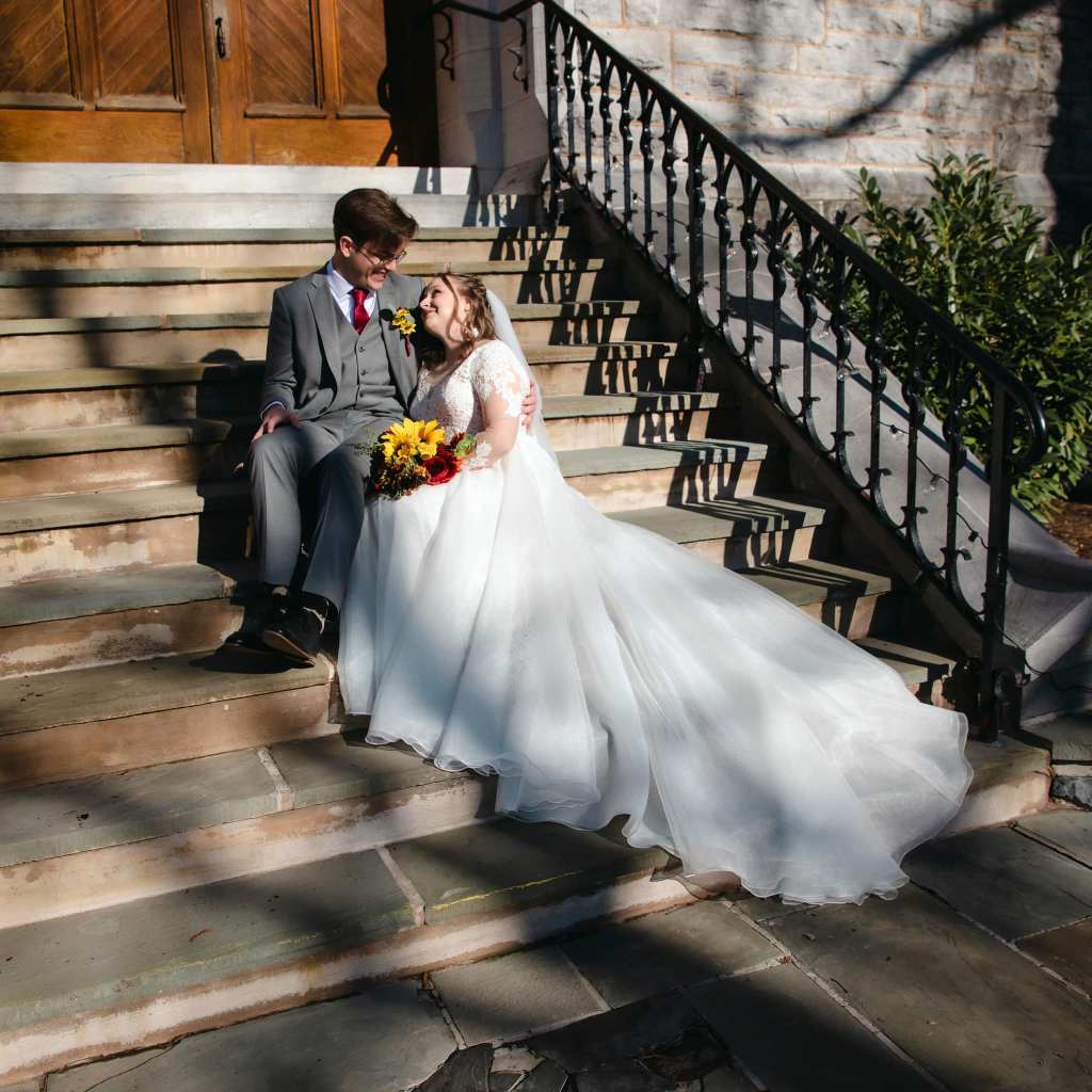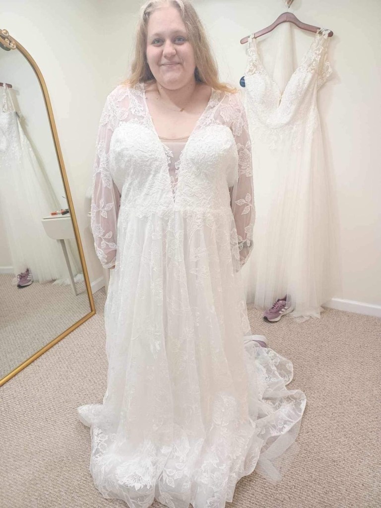 A two piece skirt and body suit from Church Street Bridal in Lynchburg Virginia. I added boning and structure to the body suit and attached it to the skirt to make her dream wedding gown.